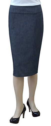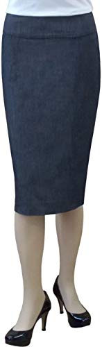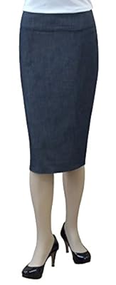 This simple, stretch denim pencil skirt is designed with contoured waistband yoke with back darts, and is not revealingly tight where you might not want it to be. Designed to fit the on the lower hip, this 25" long pencil skirt has the perfect shape and silhouette, while not being too tight where you don't want it to be. Made from a soft, durable, stretch cotton-polyester-spandex denim, it's wrinkle resistent and easy to care for. With a simple, yet stylish and elegent classic panel look, it will fit perfectly in any wardrobe..............WOMEN'S Size Specifications: Size 2: 28" waist/36" hip, Size 4: 30" waist/39" hip, Size 6: 31" waist/40" hip, Size 8: 32" waist/41" hip, Size 10: 33" waist/42" hip, Size 12: 34" waist/45" hip, Size 14: 36" waist/47" hip, Size 16: 37" waist/50" hip, Size 18: 39" waist/52" hip