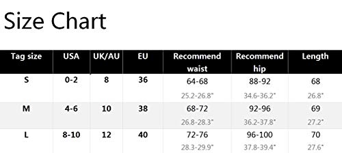 L=US 8-10 / UK/AU 12 / EU 40 : ---Recommend waist :28.3-29.9" ---Recommend hip :37.8-39.4" ---Length :27.6"