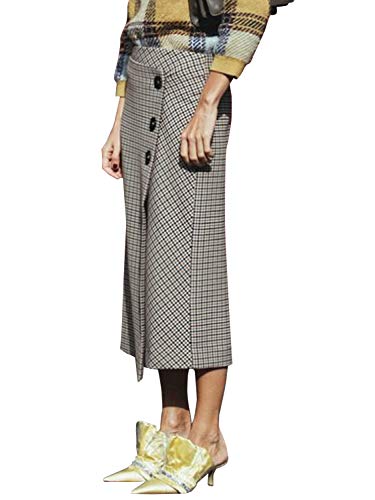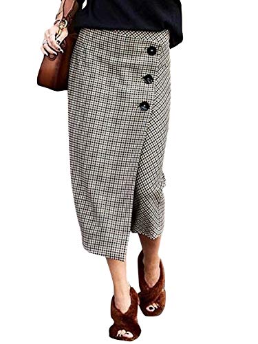 Vintage style houndstooth pattern split skirt, unique 3 buttons design, more chic