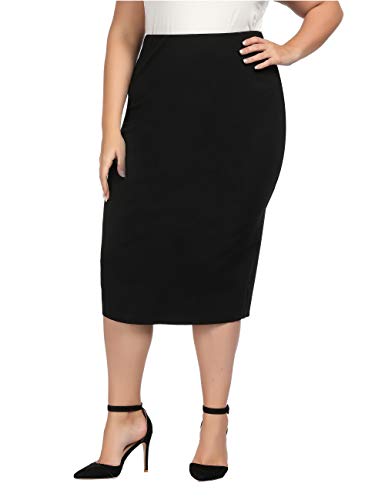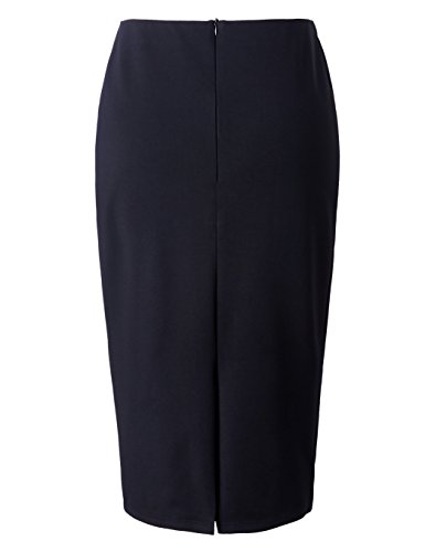 Sleek Silhouette Stretch Knit Long Tailored Pencil Skirt, Stretch Flattering Skirt Pulls on with An Elasticated Waist for An Instant Hit of Glamour, Back Center with Concealed Zipper, Calf Length with Flattering Back Slit