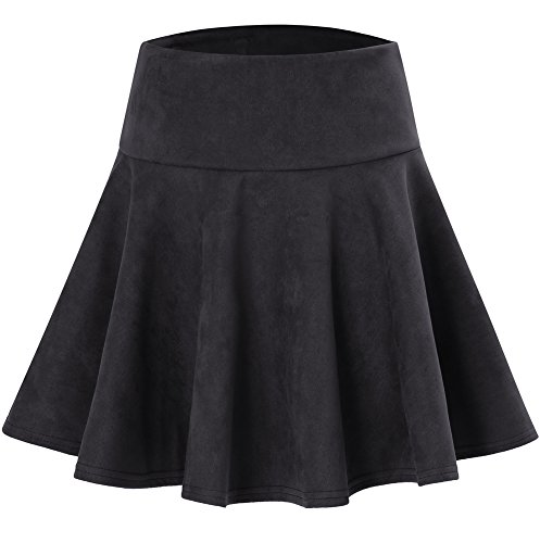 Style:Swing,Flared Mini Short Flared Pleated Skater Solid Skirts with Elastic Waist, No Pockets