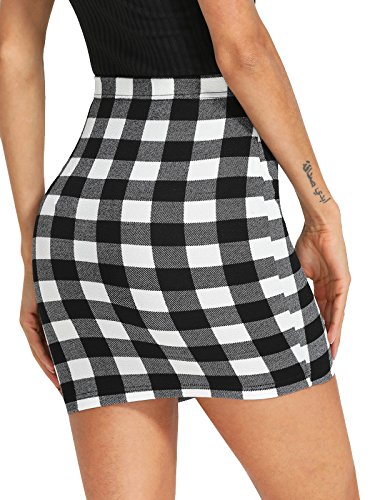 Elastic waistband, mid waist, above knee length, plaid printed, no pocket.