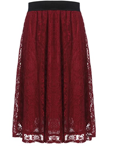 Halife Woman Elastic Waist Band Lace Midi Skirt