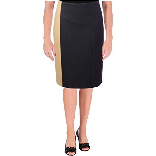 With sophisticated muted tones on a color block detailed skirt, this sophisticated staple is perfect for any occasion. Pairs well with a camel turtleneck.