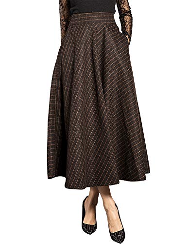 A-line casual plaid pattern thicken warm plover mid-calf skirts