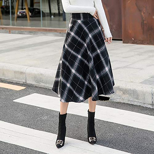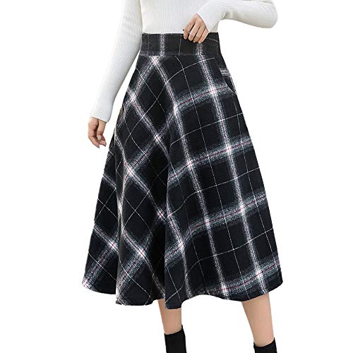 NREALY Skirts Womens High Elastic Waist Maxi Skirt A-line Plaid Winter Warm Flare Long Skirt