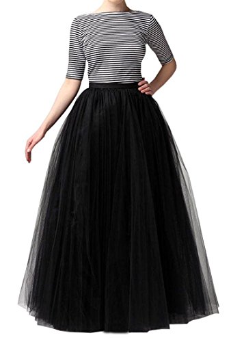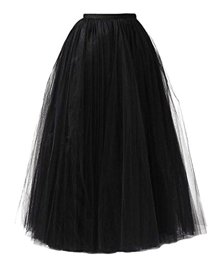 Women Ladies Knee Length Long Elastic Waistband Tutu Skirt Vintage Swing Fluffy Underskirt Crinoline