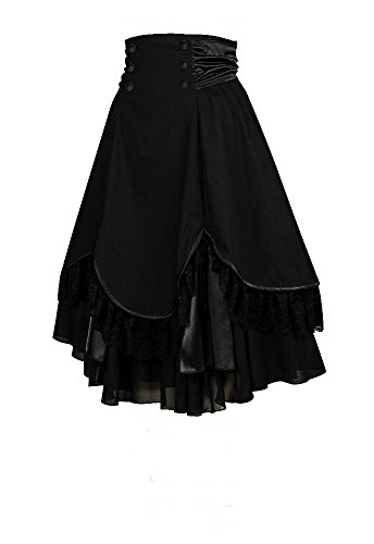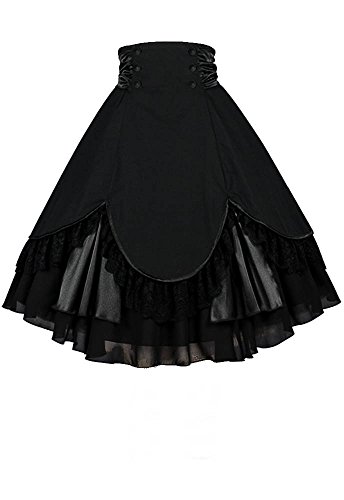 This skirt features the decorative buttons in front and the sash which is sewn to the waist at two sides and can be tied into a bow at back