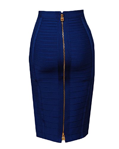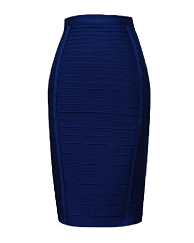 UONBOX Women's High Waist Stretchy Slim Fit Midi Pencil Bandage Skirt with Back Zipper
