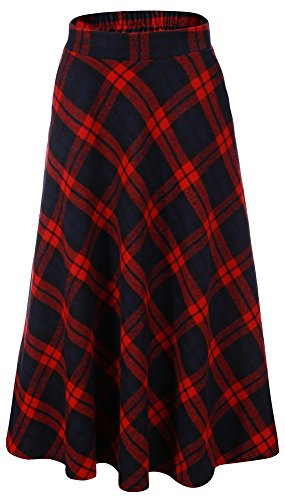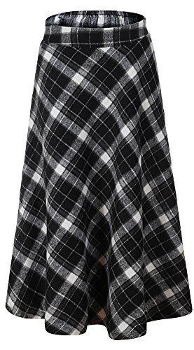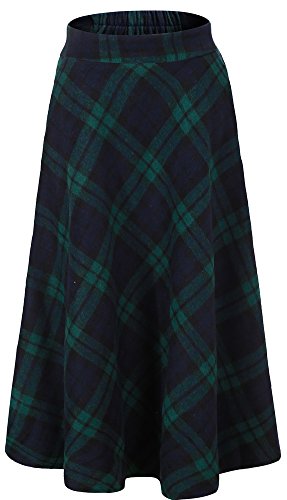 Features: A-Line,Midi Skirt,Plaid Skirt.Wool Blend.Back Waist Band,Two Slide Pocket.