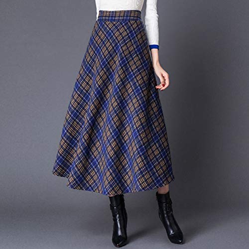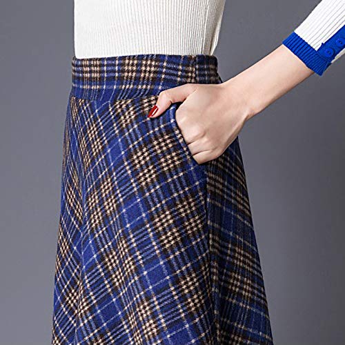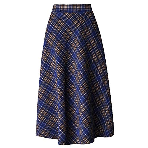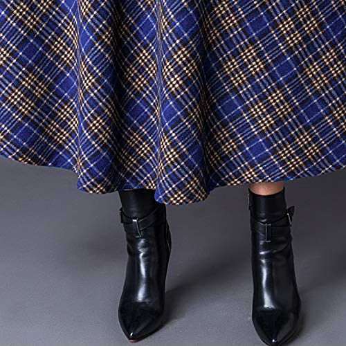 Material: Blue Woolen out material Vintage Plaid skirt, Polyester lining inside, soft comfortable and breathable, elegant women best choice.. Occasion: Causal, Party, Street, Beach, Taking Photo, Home, Party, Shopping, Club, Vacation, Holiday. Features: woolen skirt , Retro fashion.elegant, autumn party good choice. Please do not choose as Amazon official measure chart, please refer to our measure data in photos Garment Care: Hand-wash and Machine washable, Dry Clean.Carefully,Low Temperature for Washing,Can not High Temperature Ironing.
